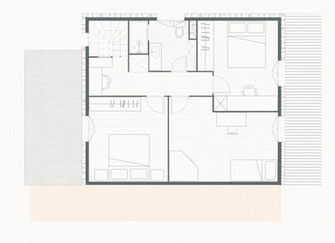 Une pergolas avec une vigne caduque a été ajoutée au sud pour protéger la maison du soleil en été.