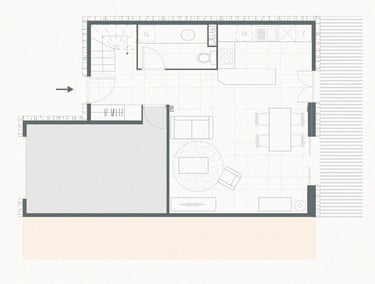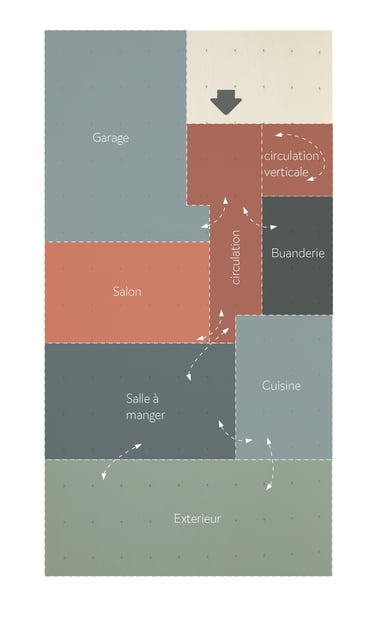 La maison a été remodélisée en son intérieur de manière à accueillir ses nouveaux occupants : un couple avec enfant. Des cloisons ont été détruites pour aérer l'espace et donner une illusion de grandeur tout en permettant à la lumière de pénétrer de part et d'autre de la maison. Ainsi, il est aisé de ventiler la maison du nord au sud pour apporter de la fraicheur durant les nuits chaudes de l'été.