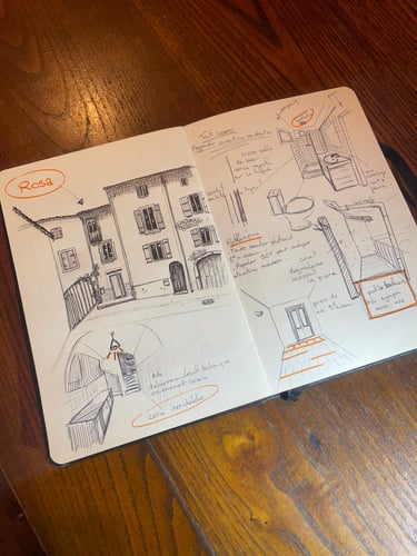 Rosa est une maison de village située dans le sud des Cévennes. Il s'agit d'une maison en pierre sur trois niveau et très étroite. Cette maison est le résultat de toutes les indivisions qui ont eu lieu les décennies passées.