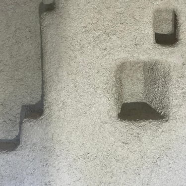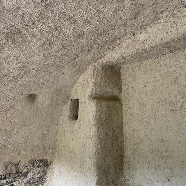 Volumes en plâtre et terre crue : création de niches, habillage de cheminée, petites architectures intérieures façonnées à la main.